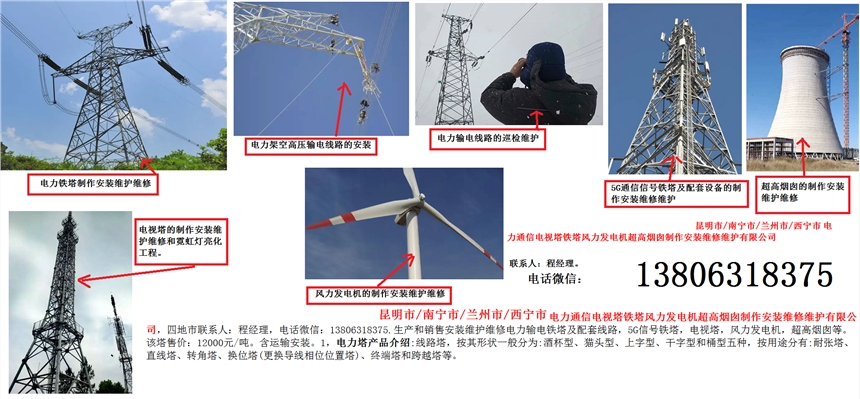 昆明市/南宁市/兰州市/西宁市电力通信电视塔铁塔风力发电机超高烟囱制作安装维修